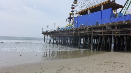 続いて訪れたのがサンタモニカピア。平日でしたので人影はまばらでしたがブランドショップが立ち並び、週末は大勢の人で賑わっているそうです。道行く人はスラリとした人もいれば、考えられないような巨漢まで。
