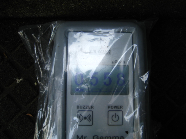 0.558マイクロシーベルト…。階段の下はコンクリートが削れてしまっていて穴があいています。水勾配も悪く雨水がたまりがちです。そのためにマットを敷いていますが、そこだけが高い値となってしまいました。