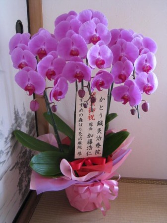 患者の治療をしていたら、どこかでインターホンがなったような気が…気のせいだろうと思ったけれど、一応出てみたら………どでかい箱を持った宅急便のお兄さん、『花が届いています』。 入院している父のお見舞かなとも思ったけれど、あまりにも大きすぎだれだろうと思って宛名を見たら、お世話になっているかとう鍼灸院からの開業祝でした!! 立派な胡蝶蘭。むちゃくちゃびっくりしました。ありがとうございます!毎年、花を咲かせるよう頑張ります。もちろん治療の方も。 これからも宜しくお願いいたします