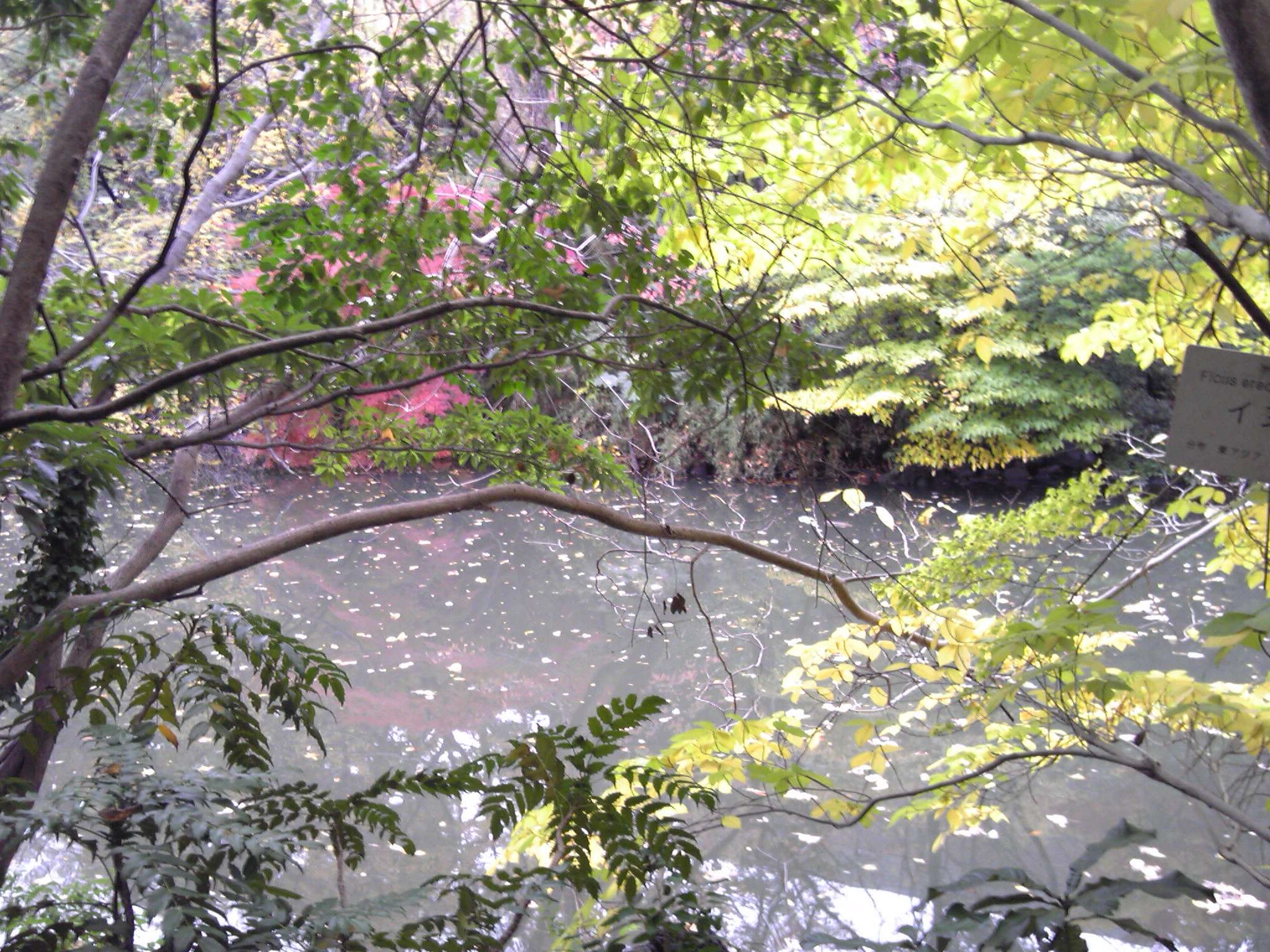 カメラを持って行くのを忘れてしまい残念。構内の池の辺も非常に綺麗で見学に来ている方や写生をしている方がたくさんおられました。せっかくなのでガラケーで撮りましたが、やはりいまいち。。せっかくの紅葉の美しさが全然わからない一枚です。。