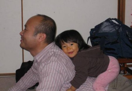 1月16日、日曜日は千葉鍼灸学会に出席するため休診いたします。治療をご希望の方にはご迷惑をお掛けいたしますがご了承下さい。治療に関する知識や技術を一層深めて行きたいと思います。 パパの背中でお馬さんごっこ 私ではありません。パパ(私の兄)です。