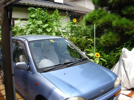 そのため、今まで入れていた庭の駐車場には入らなくなってしまうので先週の開店休業状態だった土曜日は、車庫の拡張をしました。拡張するためにニラや三つ葉、大葉、みょうが、ふき、ひまわりとドウダンツツジの移動…。でも、どうだんつつじが抜けない…![]()