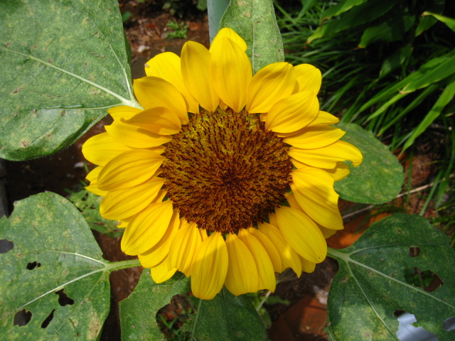 今、庭にはヒマワリがどんどん咲いてきています。後から植えたヒマワリは同じ品種なのにあまり大きくならずに可愛らしく咲いているのが多いです。大きく育ってから咲くのではなく、この時期に咲くように造られているみたいです。自然界は賢いですね。
