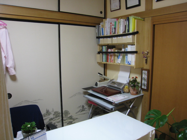 狭い治療院なので、収納スペースがなく困っていました。どうにかスペースを確保するために、事務机の上に本棚を取り付けました。