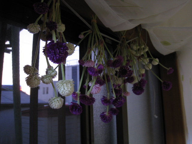 そのあとは千日紅のドライフラワーをつくりました。