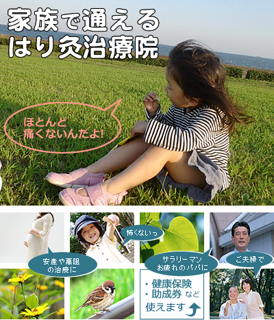 当鍼灸院には、ぎっくり腰などの腰痛だけでなく、交通事故後の治療(むちうち症)、突発性難聴、片頭痛、顔面神経麻痺、自律神経失調症、パニック障害、神経痛、不妊症、逆子や悪阻(つわり)、パーキンソン病など乳幼児から高齢者まで様々な方が来院されています。
